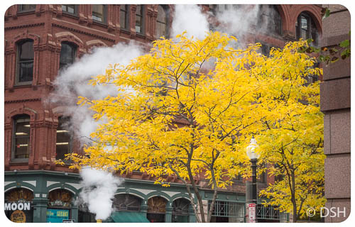 I spent a rainy day in Boston, transitioning from the wilds of the coast to bustle of the city, heading next to NYC. I stayed at an airbnb in Roslindale where I was able to leave my car, and took the Orange Line downtown. I walked across a bridge to the Institute of Contemporary Arts museum where I saw a beautiful fiber sculpture show and enjoyed watching the end of The Visitors, a music video installation. After lunch at Durgin Park, adjacent to touristy Quincy Market, I took the train a couple stops back so I could walk through the Boston Commons. It was quite pleasant, until the drizzle turned to downpour. I returned to my room to dry off and finally uploaded my first post for this trip (leaf peeping in Vermont).