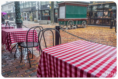 View from lunch at Durgin Park; this tables were abandoned during downpour