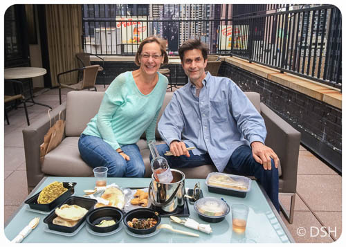 Surprise, while in Time Square we ran into a couple I know from San Francisco, Dan and Marie, who I haven’t seen in several years. We had them over for drinks on our deck; they brought Lebanese leftovers including very delicious Brussels sprouts. I enjoyed our visit and look forward to getting together back home.