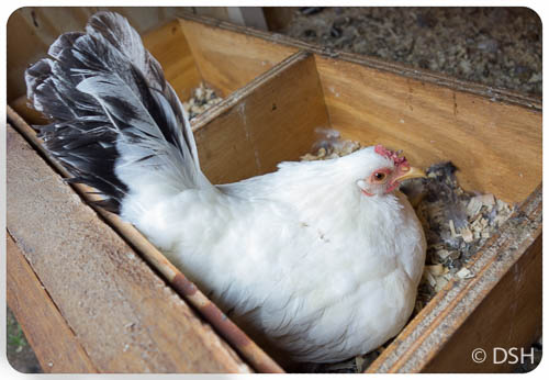Bantam chicken in the brooding box