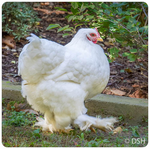 Lucy, a Cochin chicken, walks like a Clydesdale