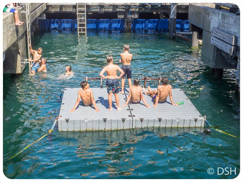 ← Previous Next → Swimmers near wharf. It may officially be fall down here, but to me it feels like summer.