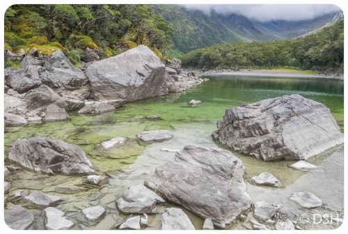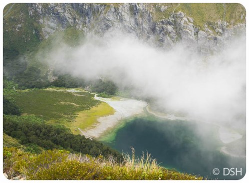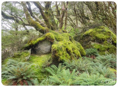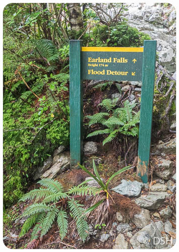 Today, I reached the trailhead, at the Divide, in just 15 minutes over that posted four hours. That included a short snack and restroom break at Howden Hut. (It’s nice to have a place to get out of the rain). No one was taking the detour up Key Summit, which on a clear day provides a view of Milford Sound.
