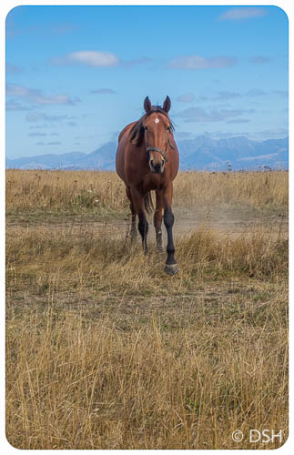 Today was a great, car-free day. The swells were too high to swim with the dolphins, as I had scheduled (residual effect of the cyclone), but it was a sunny and warmer than the last few days. I had a wonderful hike and chat with Oscar, a fellow San Franciscan staying in the neighboring room at the B&B. We took a loop trail around the Kaikoura peninsula, starting at the beach since it was low tide; the rock formations at the point were fascinating. We came back up along the top just as the clouds were clearing over the inland mountains and we could see a bit of snow on the peaks. We had fun feeding bits of apple and carrot to a group of horses.
