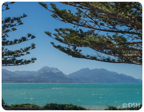 - Norfolk Island pines planted along the shore in Kaikoura