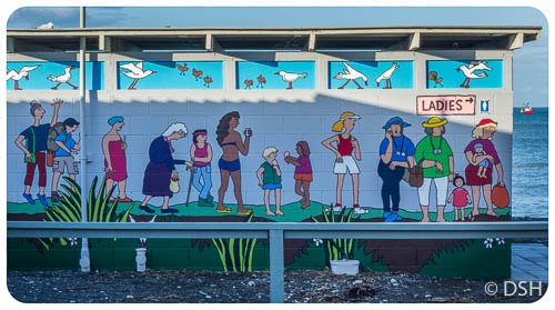Today was a boring day. In the morning I lingered in my ensuite cabin until checkout time (that was not the boring part, especially with a lake right out my window), then I took the long route to Christchurch (that was the boring part). I first went to Timaru to see the Maori Rock Art Centre (interesting, but not worth a detour, especially if you’ve seen actual petroglyphs elsewhere). Timaru feels like an industrial port town, though the city centre was walkable and I had a chance to stretch my legs. I then took the inland “scenic” route to Christchurch, eager to get off the busy coast highway, not realizing how much extra time it would add. It was no more scenic than any other rolling farmland, though I enjoyed visiting a gallery located in an old post office in Geraldine. In the end, I got stuck in commute traffic coming into Christchurch, much more than I expected for a city of 375,000 (NZ’s third largest). Apparently some of the earthquake-damaged roads are still closed, causing increased traffic on others. Fortunately, my evening was quite pleasant. I chatted with my B&B hosts, Jill and Ruth, over both tea and a drink, and then had a nice meal overlooking the beach.