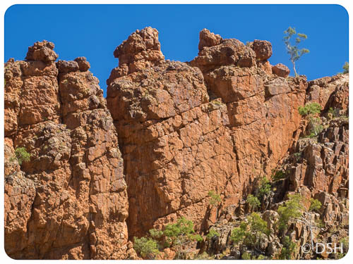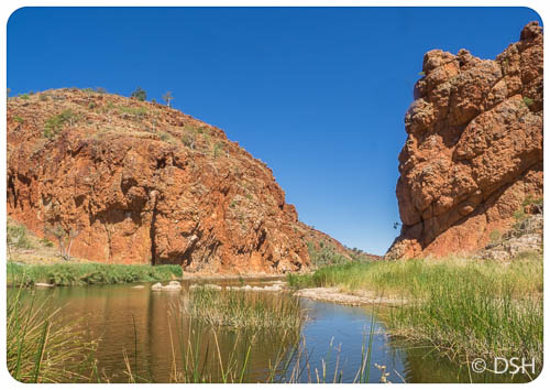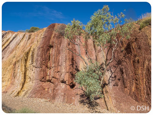 I took a day trip to numerous spots in this colorful mountain range with only three other tourists, including the same Aussie American I chatted with on the plane yesterday; he’s taking about three weeks to hike the Larapinta Trail, something I wouldn’t consider in this heat. Our guide was very knowledgeable and shared a lot of information with us, about both local history and nature.
