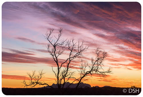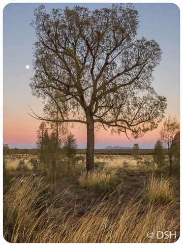 I walked up to the viewpoint near my hotel to watch the sunset. We didn’t get the magic red light on Uluru, but the sunset over Kata Tjuta was amazing. I didn’t know it at the time, but this was an unusual sunset, apparently caused by a lunar eclipse that I missed.