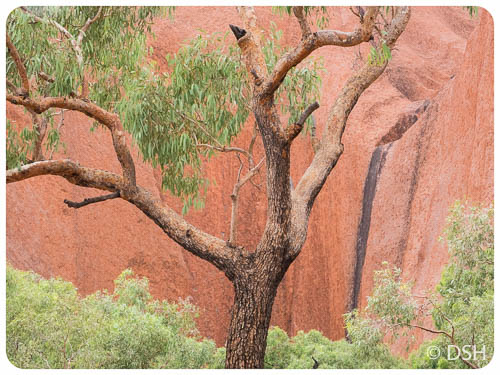 It’s a long drive to Uluru, more than five hours, on an almost straight road. With a few stops along the way, we reached our campground in Yulara, the town just outside Uluru-Kata Tjuta  National Park, in time for lunch. Afterwards, we visited the cultural center (the land surrounding this area has been returned to the Aboriginal people and they manage it jointly with the park service), and took a couple short walks near the base of Uluru. The majority of this broad monolith is underground and what we see is one end of a giant rock formation that has been turned on end.