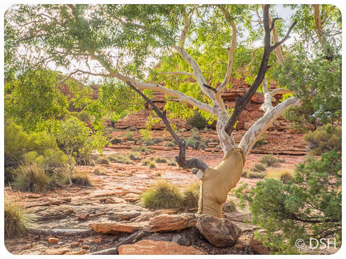 This trees trunk is wrapped to help it recover from carvings by thoughtless humans