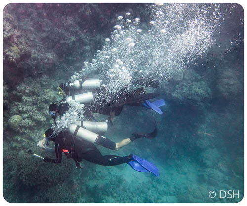 I completed six dives in two days. A fast, crowded boat took us out to the reef and on a couple dives, and then we transferred to a nicer liveaboard boat. My cabin, which I shared with a young woman from Holland, was spacious and comfortable with it’s own bath. I could have easily spent more time aboard.