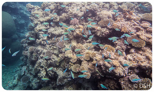 I brought a waterproof housing for my small camera and had fun trying to take pictures of the fish; it’s a challenge to photograph small moving objects while bobbing around in the water. The coral was more damaged than I anticipated, at least in the sections we visited. The Great Barrier Reef is the largest coral reef in the world, covering about 350,000 square kilometers, so I certainly didn’t see it all. Some portions looked like underwater gardens, so if we stop polluting our oceans, maybe it can recover.