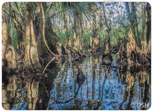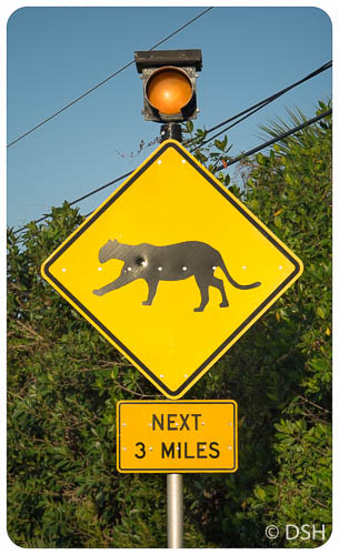 The shuttle picked me up at 4:00 a.m., expediting my adjustment to the East Coast time zone. Our take off was delayed a bit, due to a mechanical problem with a cargo door, so I entered commute traffic when I left Miami in a rented Hyundai. It was dark by the time I got out of town, so I saw nothing but taillights as I drove the Tamiami Highway to Everglades City, near the northwest section of the national park. The animal crossing signs were flashing, but no one slowed down for the wildlife. Fortunately I saw no dead panthers or alligators, though cars kill many of them.