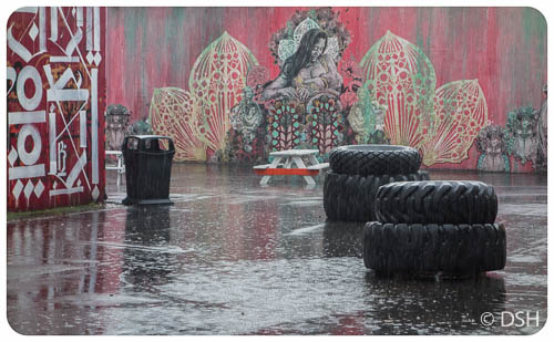 We almost got back from a morning walk along the beach before the rain started. Since the sky was grey, we changed into dry clothes and braved the Aventura Mall, shopping for shirts and ponchos. The rain long stopped enough for us to take a short walk in the Wynwood area, filled with murals, galleries, and cafes. It started pouring just as we finished lunch at Coyo Taco, so we ordered hot beverages from Panther Coffee and waited for it to slow down. We headed out during a lull, but it started again and we were soaked again by the time we reached the car.
