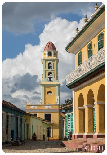 I later joined the group for a walking tour of the historic district, another UNESCO site – homes of wealthy families on the square (sugar cane plantation owner, factory owner, railroad owner, and slave owner). More than a million African slaves were brought to Cuba and many of the island’s inhabitants are descendants of them. I later purchased a couple souvenirs at the handicraft market, one of the few places to buy anything. They had small wooden items, embroidered linen, jewelry made from old silverware, and handbags made by crocheting the aluminum tabs from flip top cans.