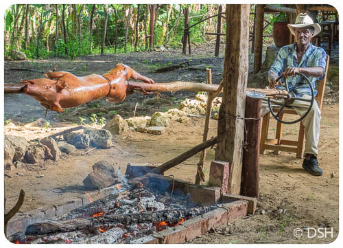 After an early morning walk (colorful casas, horses, bicycles, oxen) and another identical breakfast, I joined the others for a tour of a tobacco farm where we learned how cigars are made. Permits are required for this family-run operation to allow tourists and it’s heavily taxed. We had time to walk to the town square before lunch. After a siesta, we toured an organic farm where we were served a huge family-style dinner while watching the sunset. I showered before heading back to the town square to see a band, but don’t know why I bothered since I was sweating again before I’m got dressed.