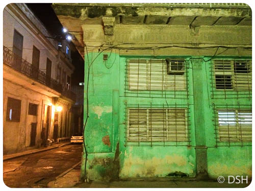 I had dinner in an outdoor plaza with about half the group, an ever-present band playing. We then met the others for a taxi ride to a club. We were the first to arrive at 10 pm and didn’t stay for the live band, which we later heard started at 1:00 a.m. (Needless to say, many Cubans are on a later time schedule than we are). Back in our neighborhood, I took a short nighttime stroll with Anne, Nancy, and Harley (for the first time we are staying at a casa with fellow travelers).