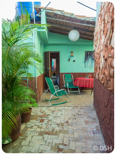 Breakfast at our casa was moved indoors due to more rain. It was the same government-dictated meal we would receive every morning – eggs, rolls, fresh tropical fruit (which we were assured was safe to eat), juice, and coffee/tea. We met the others at our rendezvous point. Our bus was significantly bigger than the van we were expecting, so with a row per person the long drive to Trinidad was quite comfortable.