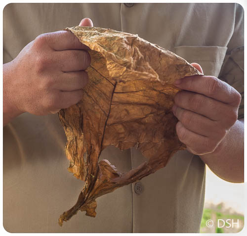 Getting tobacco leaf ready to roll into cigar