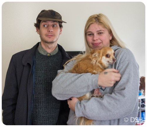 - My other niece, Rachel, and Alex. Belle, the chihuahua, is eyeing the camera suspiciously.
