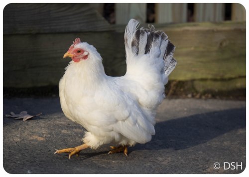 - Dante, the Cochin rooster, tried to chase me away from “his” hens.