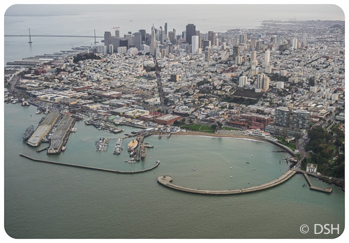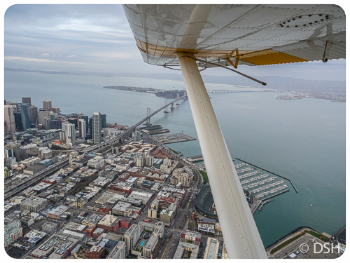 I didn’t go far, but I’m considering this travel since an airplane was involved. Alex finally collected on the present I gave him for his 30th birthday, one year ago today. We took a 45-minute seaplane tour over the Bay Area. The weather was not optimal, but the view was awesome. (I had to increase the contrast quite a bit to get usable pictures).
