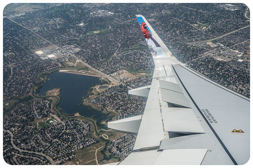 Next → Approaching Denver – this Frontier Airlines flight was the most cramped I’ve ever experienced.