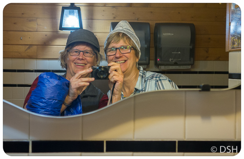 Selfie at restaurant (notice blue rain poncho)