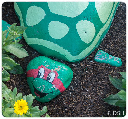 ← Previous Next → Ninja turtle hiding in a sidewalk planting, spotted while waiting for the complimentary bus between Winter Park and Fraser