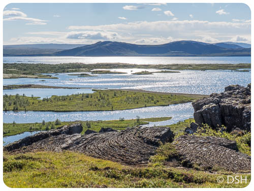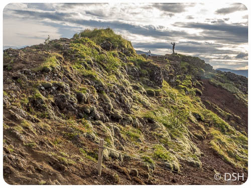 I rented a car with GPS and drove to see Iceland’s most famous tourist attractions, collectively known as the Golden Circle. The weather was perfect for photography, a beautiful, changing mixture of sun and clouds. I walked several kilometers at Þingvellir National Park where the European and North American tectonic plates meet, got splashed with warm water at Geysir, was awestruck by the volume of water in Gullfoss (“foss” meaning waterfall in Icelandic), and took a stroll around the Kerid crater shortly before sunset on my way back to town.