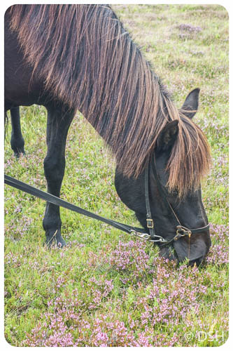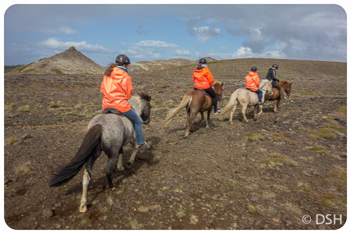 After breakfast and a leisurely morning stroll, I was picked up in a van and transported to the Íshestar Stables where I went on my best horseback ride ever. The small, hardy Icelandic horses have a couple gaits not commonly found in horses: tölt (same footfall pattern as walk but faster) and skeið (a.k.a. “flying pace”, close to a gallop). Both paces are smoother and more comfortable than any I’ve experienced. Great horses, combined with fun guides and beautiful volcanic scenery made for a wonderful time. In what seems to be typical weather for Iceland, we had a mixture of sun and rain, so the provided raincoats came in handy.
