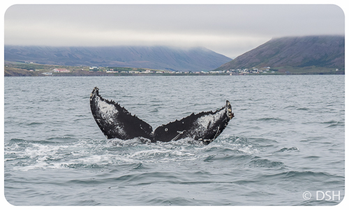 Our room wasn’t ready, so we left our bags at the front desk and headed over to the dock to find our rib boat for a whale-watching trip that far exceeded our expectations. The narrow boat can take twelve passengers and there was only one other besides the four of us, a man from Kuwait (quite a weather change for him). Geared up in floatation suits, which helped protect us from the chilly wind, we sped about 20 km out through the fjord, towards the Greenland Sea, and saw about a dozen Humpback whales. It was an exhilarating ride and we were all beaming afterwards while enjoying a Thai restaurant, where I negotiated extra veggies in my curry.
