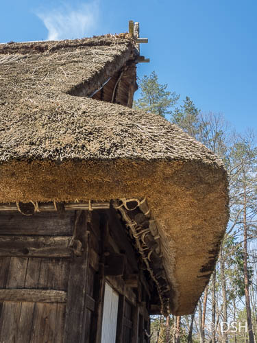 After a beautifully presented breakfast at our guesthouse, we strolled through the morning market selling food to the locals and souvenirs to the tourists, walked through a temple, and caught a bus uphill for a tour of Hida No Sato, a demonstration folk village. The buildings, covering a variety of styles were relocated from around the area, some of them due to be flooded after a dam construction. In general, the insides were dark and cold. Fires would have been burning continuously making them smoky. Some of the top floors were dedicated to the raising of silkworms.