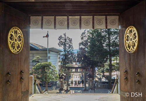 Back in town, we split into two groups for lunch. Nancy and I joined Marty for pizza, thin crust and yummy, while the others went to a restaurant serving soba noodles. (I’m tired of noodles). Next we went sake tasting. Of the five we tried, we agreed that the freshest and the plum versions were the best. The former required refrigeration so I bought a bottle of the later to take home. With a couple hours before our rendezvous at the torii gate, I visited the shrine, then headed uphill to Kitayama Park which had nice views of the town and mountains. I almost dropped my camera here when the strap holder detached from my camera, a problem I’ve never heard of in all my years of photography.