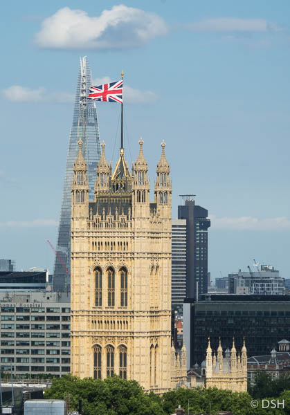 Palace of Westminster in front of The Shard (UK’s tallest building, 95-stories)