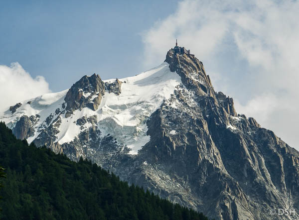 Our only clear view of 12,680’ (3842m) Aiguille du Midi