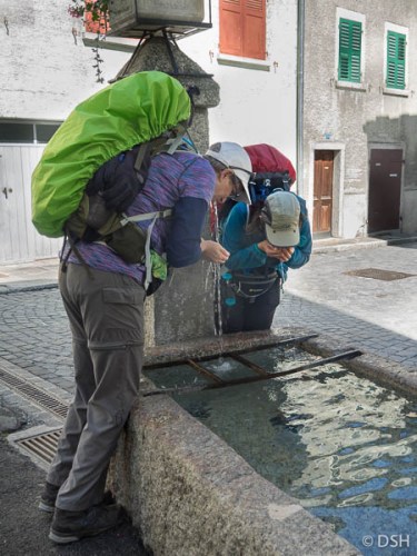 - Lynne and Anne quenching their thirst in Sembrancher