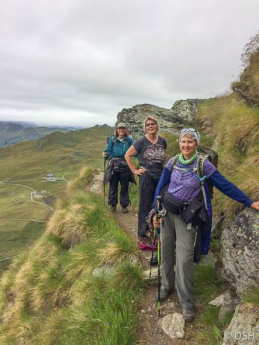 Anne decided to return home early, the injuries she incurred before our trip didn’t allow her enough time to get in shape, so she departed this morning, catching a bus and train to Zurich, then flying to London. Lynne woke up feeling ill, so she caught the first bus with Anne, while Hennie and I hiked.