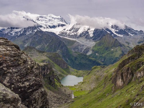 - Lac de Dix, a larger reservoir, seen from ridge about a half hour uphill past Prafleuri