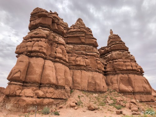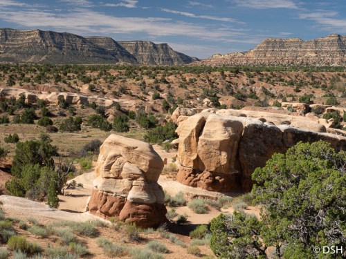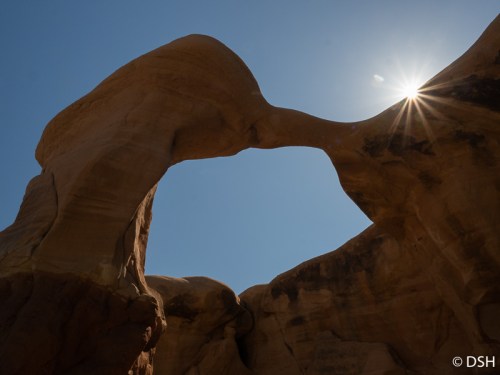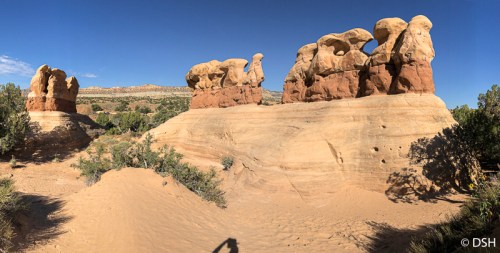 We ate breakfast at the tiny café adjacent to our cabins, then headed down Hole-in-the-Rock road within the Grand Staircase-Escalante National Monument. This dirt road was in good shape considering the recent rains. It was 13 miles to Devils Garden. We had a whole hour to explore this awesome collection of sculpted rocks before anyone else arrived, and Annie earned the nickname “Panorama Queen”. On our way back, we considered a detour to Cedar Wash Arch, but the road wasn’t passable.
