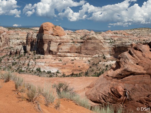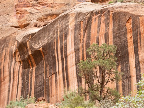 Back on Highway 12, an incredible scenic road, we headed north to the Escalante Trailhead, stopping at numerous overlooks to ooh and ahh. We hiked/scrambled up to see petroglyphs, but skipped hiking to a rock bridge since it would have involved multiple crossings of a very muddy river, still dropping from the flood that came through yesterday.