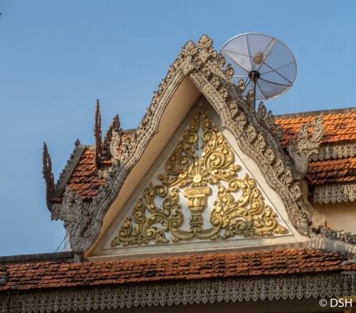 We found a tuk tuk driver who took us to several places throughout the morning. First stop, after a refreshing cup of chai tea, was the Russian market – lots of stalls selling clothing, food, and household goods. We picked up a couple souvenirs then stopped at the Thai embassy to clarify what I’ll need to do since our flight change to that country will cause me to overstay my 30-day visa in that country. Ahh, the joys of international travel. I’ll only have to pay a one-day penalty upon exit.
