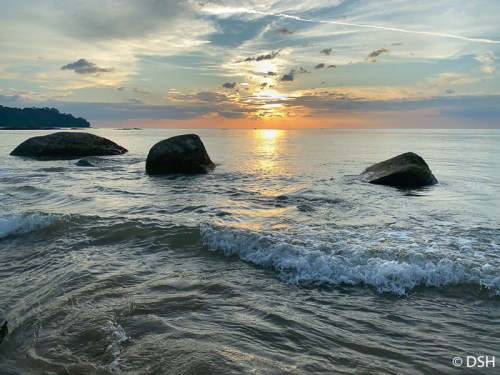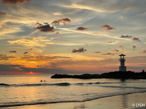 I had a late lunch, Indian food, then Kai, the manager of the hotel, dropped me off at Coconut Beach. After a nice walk, I bought a mojito so I could use a lounge chair, and enjoyed a few relaxing hours reading and napping, with a break to swing on a swing hanging from a palm tree. Kai picked me and a couple other guests up and took us to Memories Beach where I wandered until sunset. Shh, don’t tell the world, if you are looking for long, uncrowded beaches with fine sand, and warm, turquoise waters, Khao Lak is the spot.
