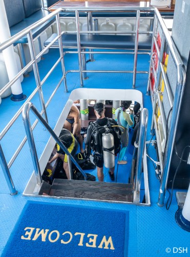 Dive, eat, nap, repeat. I did that three times today, skipping the third dive to rest up for the fourth. To that I could add shower and download pictures. I’m using underwater housing for my little Sony RX100 VI; it goes deeper and takes better pictures than the Olympus Tough, though cloudy conditions, in both water and sky have not been optimal for photography. I now learn that late February to mid-March has the clearest and calmest waters, during the hot season.