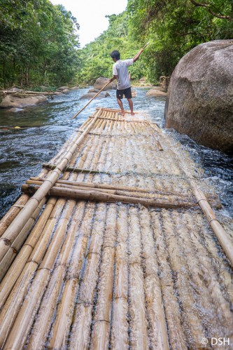 Next was a bamboo raft ride through the jungle. My insect repellent worked; I heard no mosquitos. The snakes in the trees made me a bit nervous, but overall it was a pleasant, relaxing ride. Our final stop was a small waterfall. I had to wait for a few people to finish posing for dozens of pictures before I could take one. I waded in the coolest water I’ve felt in this country. Along the way I saw trees bearing guava fruit wrapped in individual bags and sap being collected from rubber trees; now I see where my latex mattress comes from.