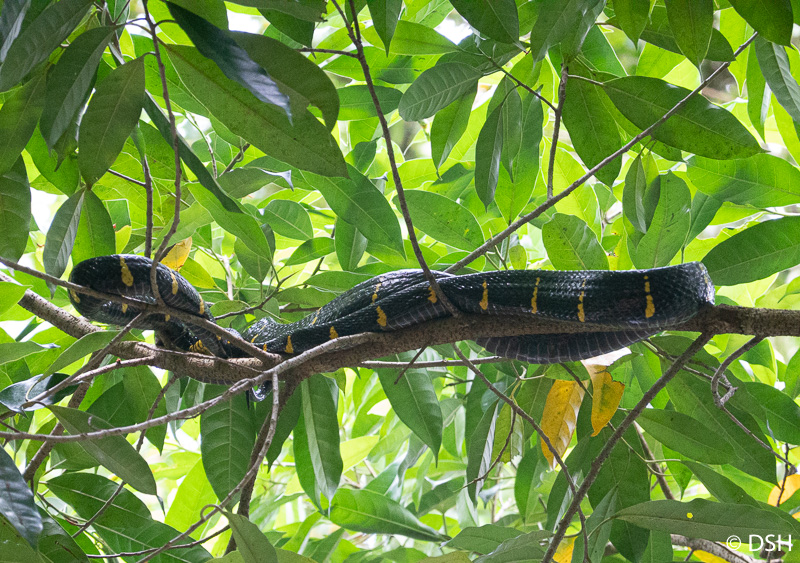 The Banded Mangrove Snake is mildly venomous. Fortunately, it’s nocturnal.