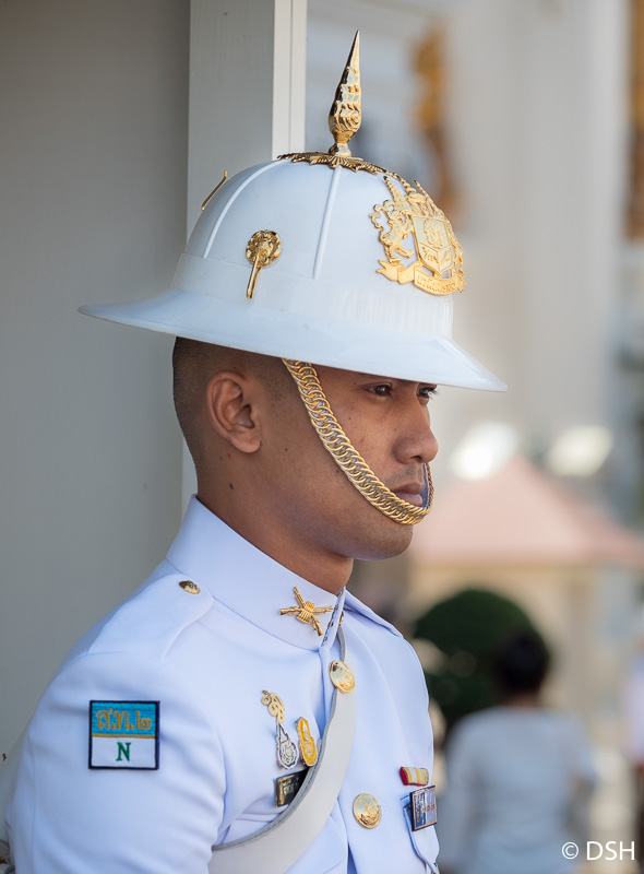 Several tourists unsuccessfully tried to distract this guard
