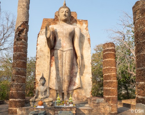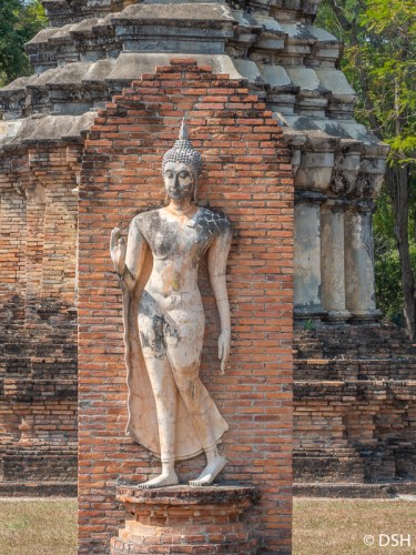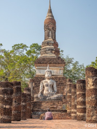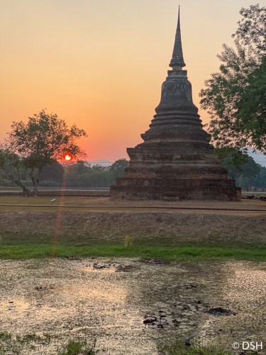 This morning we were picked up in the truck and shivered on our way to BLES. Kat shared more elephant stories with us over breakfast, then we walked back into the forest and watched the elephants for a few hours. Kat, her two youngest sons, and the mahouts then joined us for a goodbye snack at a nearby reservoir. We were able to ask questions and learned that the mahouts like both their pay and the elephants. Each is dedicated to one elephant for years, forming a strong bond of trust. We bid farewell and drove about an hour to Sukhothai.
