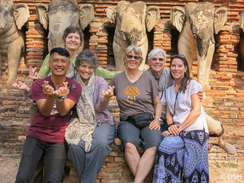 My almost two-wek elephant tour in Northern Thailand has begun. I’m traveling with five other women, including our tour leader, Jami. We are all from the west coast of America: California, Washington, and Vancouver. We loaded into a van and headed south from Chiang Mai. We started with a couple days observing elephants in the forest at the Boon Lot’s Elephant Sanctuary, and toured the ruins of Sukhothai, capital of Thailand before Ayutthaya.