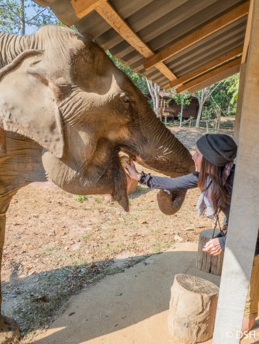 Our driver, Khack, picked us up after breakfast and took us to Suan Doi House (Garden Mountain House), where Jami lead us in an opening ceremony. I’ve had an affinity for elephants for decades, as evidenced by some of my home décor. Asked about what attracts me to them, I replied their wisdom and compassion. They live long lives, have great memories, take care of each other, and their intelligence ranks up there with chimps and dolphins.